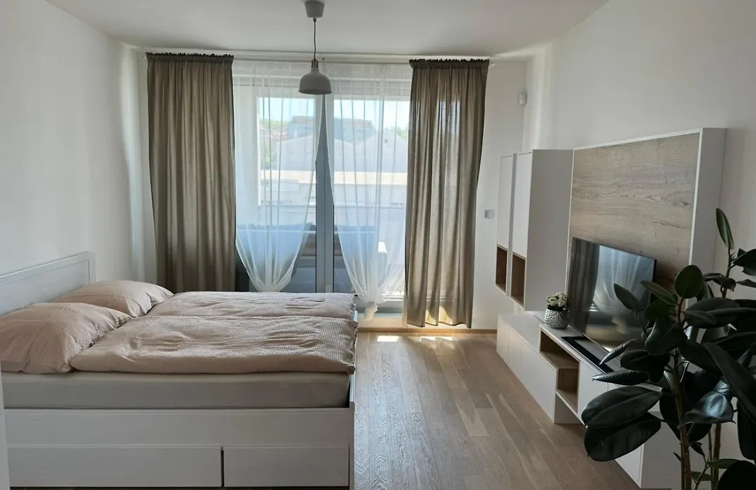 Novovysocanska busstoppested ligger 100 meter væk, og Ceskomoravska metrostation ligger inden for 10 minutters gåafstand.